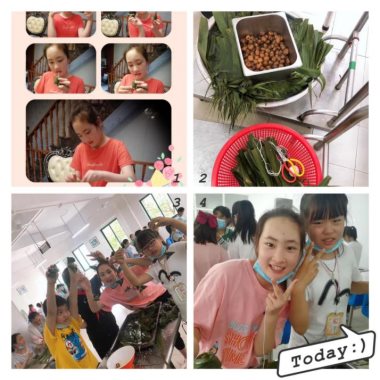 这天,学校举行了包粽子比赛,每个班级派两位同学到食堂参赛,食堂阿姨现场示范讲解了要领后,四2班的同学们动手实践,一个个有棱有角的粽子便呈现在了大家的眼前,活动现场一片欢腾,笑声连连。