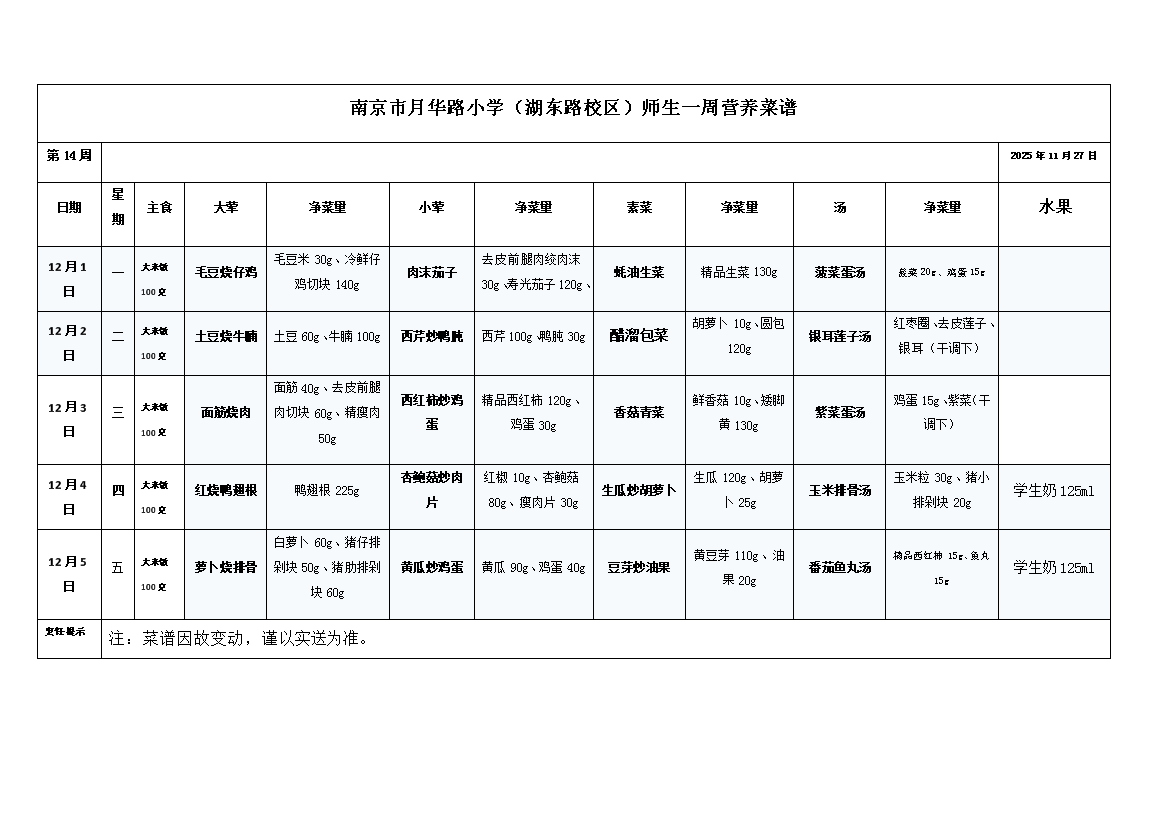 上一篇:2025年秋季第13周师生菜谱